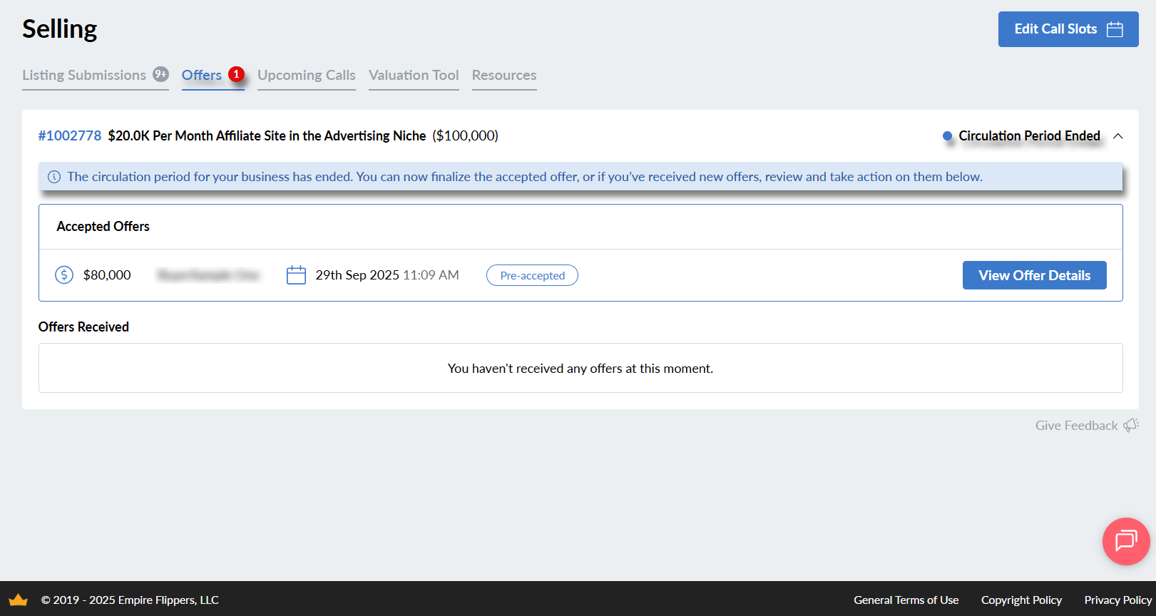 With the new due diligence selector, when making an offer, you can explicitly state your desired due diligence period so there’s no ambiguity. And for help choosing the ideal due diligence period, speak with an Empire Flippers Sales Advisor to get information directly tailored to your situation.